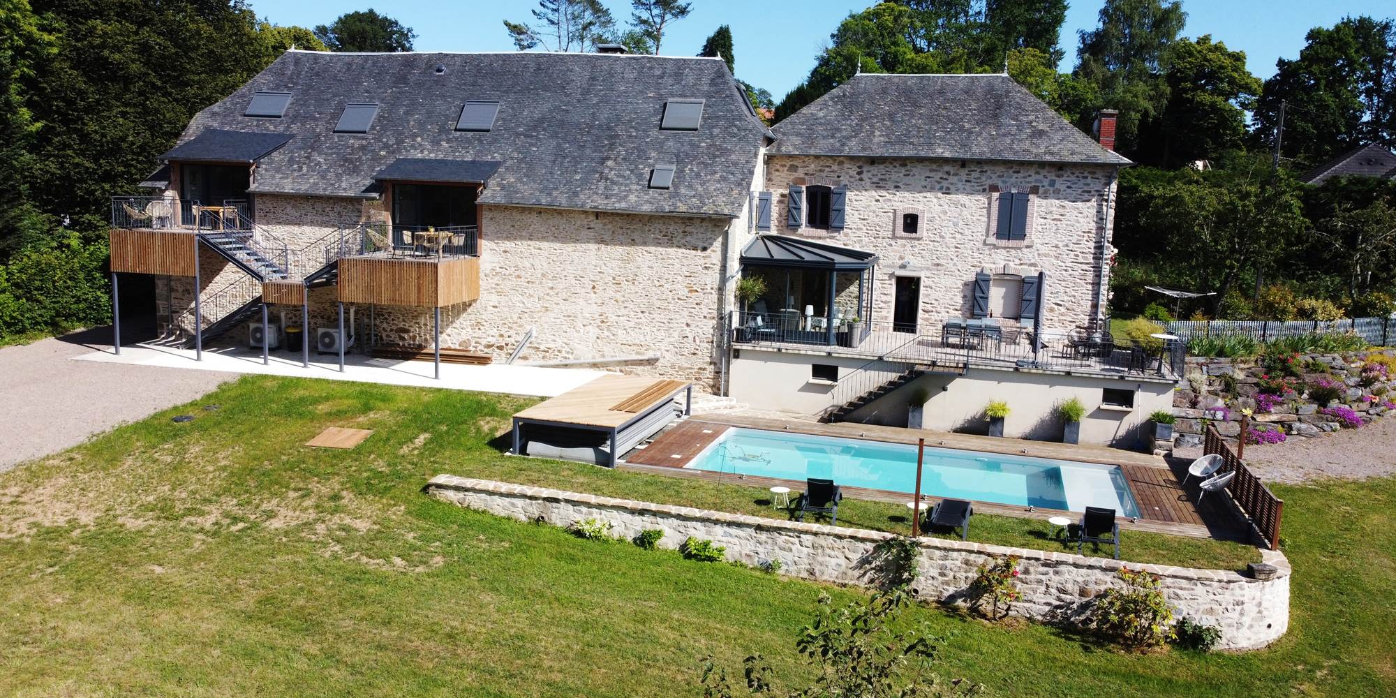 C'est une bâtisse de pierres et d'ardoises, implantée dans un écrin de verdure de plus d'un hectare, que nous, Blandine et François, ses propriétaires, avons rénové au fil des années. Nous nous sommes attachés à conserver toute l'authenticité de cette construction, en alliant moderne et ancien.